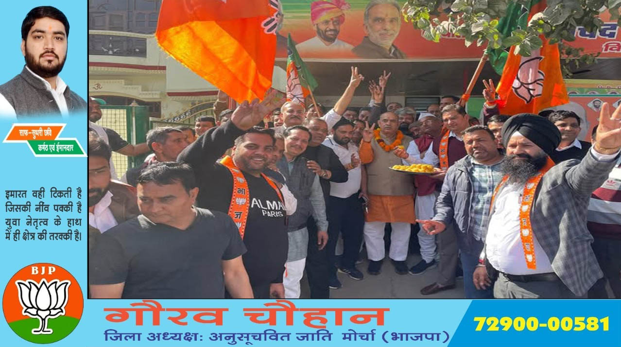 विधायक पंo मूलचंद शर्मा ने बल्लभगढ़ सेक्टर 2 कार्यालय पर आज भाजपा कार्यकर्ताओं के साथ जीत का जश्न मनाया
