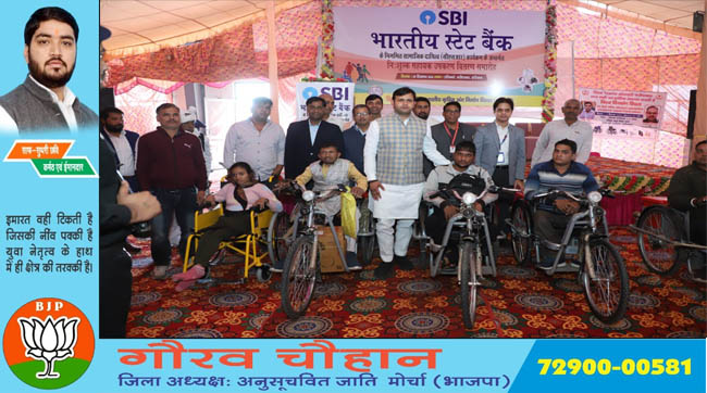 विश्व दिव्यांग दिवस पर दिव्यांगजन को निशुल्क बैटरी चलित तिपहिया साइकिल व सहायक उपकरण उपलब्ध करवाये गए