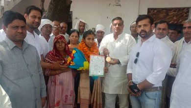 Mohtabad village’s daughter Doli Bhadana has brought laurels to the district: Dharamveer Bhadana